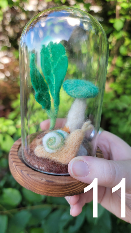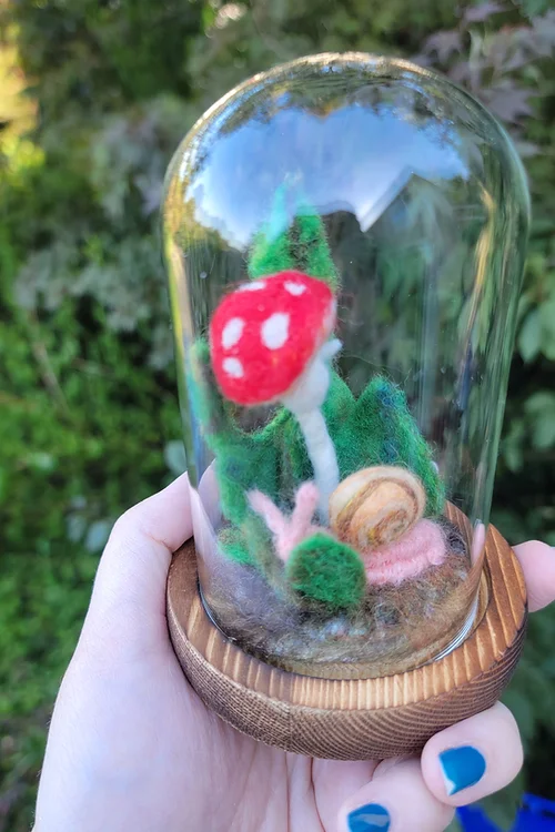 Needlefelted Mushroom Terrarium with Snail and Ladybug